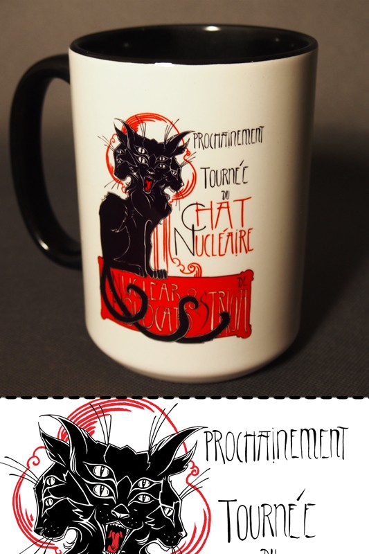 vnotřek hrnku je vínový. Další motivem, který pro nás vytvořila Striga je Chat Nucléaire, dokonale propracovaný obrázek si vedle plakátů, textilu určitě vysloužil i verzi na hrncích.
